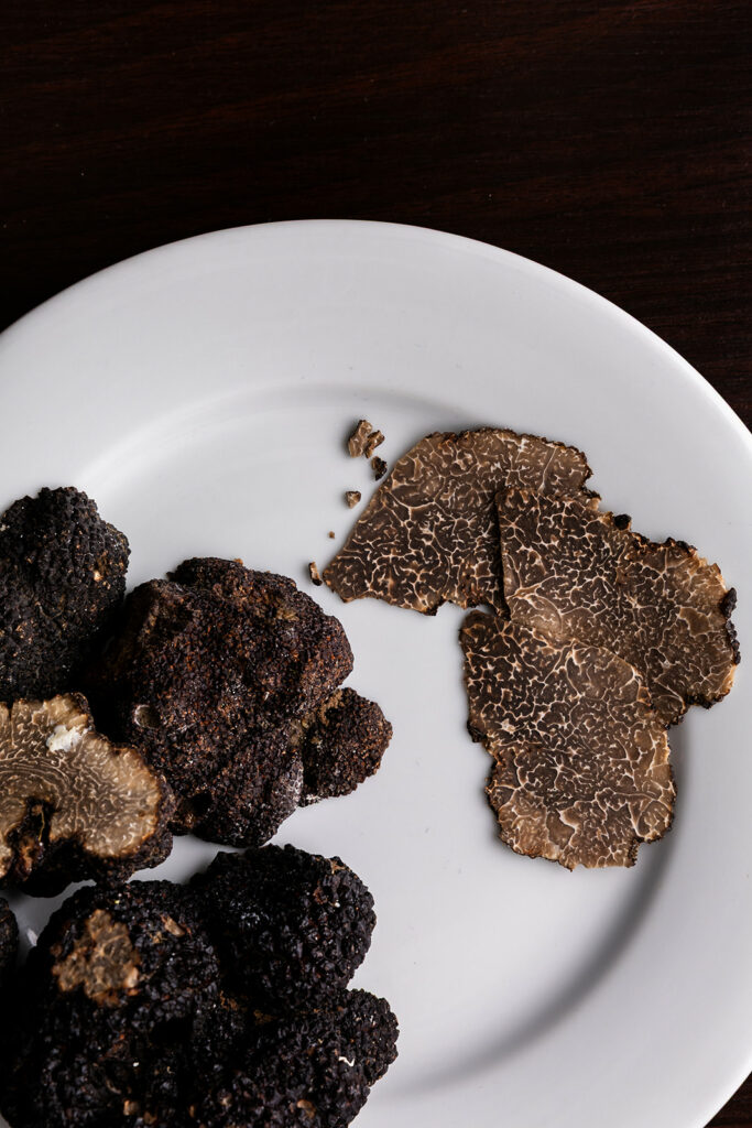 Tagliatelles al dente, sauce crémeuse aux œufs et au fromage, relevée de lardons dorés et de poivre noir.